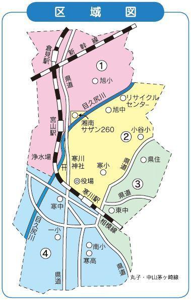 ​(寒川町のごみ日程表の区域図では、地域③(大曲1,2丁目)と地域④(大曲3,4丁目)です)